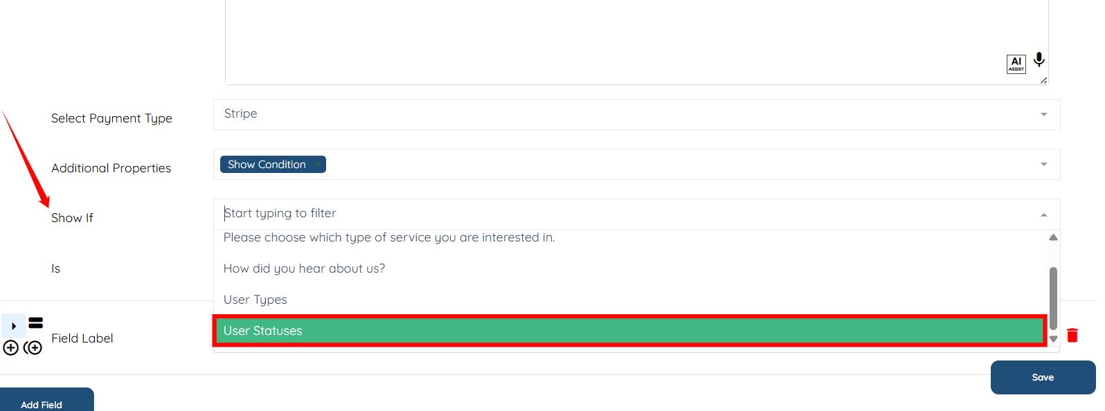 Step 5: From the Show If dropdown, select the property you want to use to define the criteria for displaying the preset section.