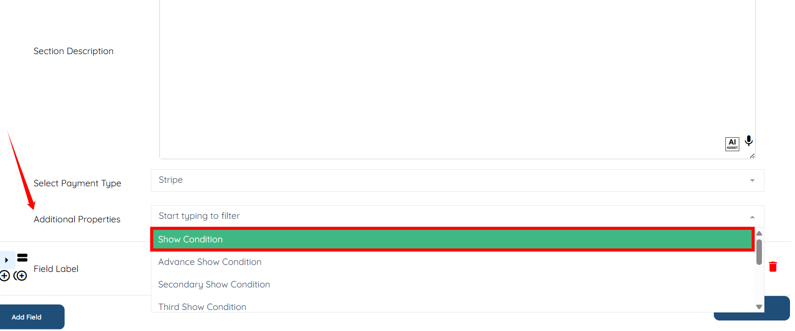 Step 4: Select the Show Condition option from the Additional Properties dropdown.