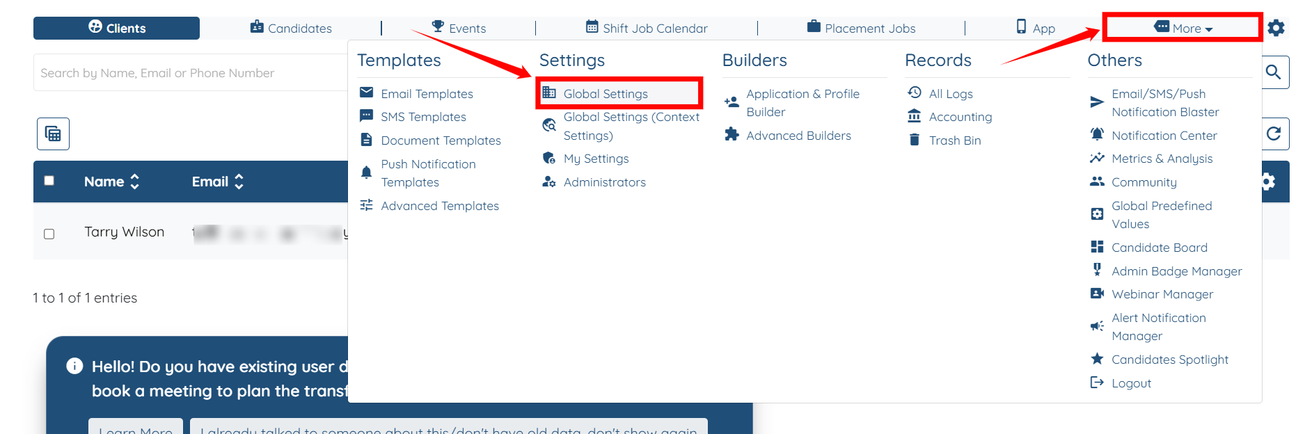 Step 1: On your agent dashboard, navigate to More > Global Settings, as shown in the screenshot below.