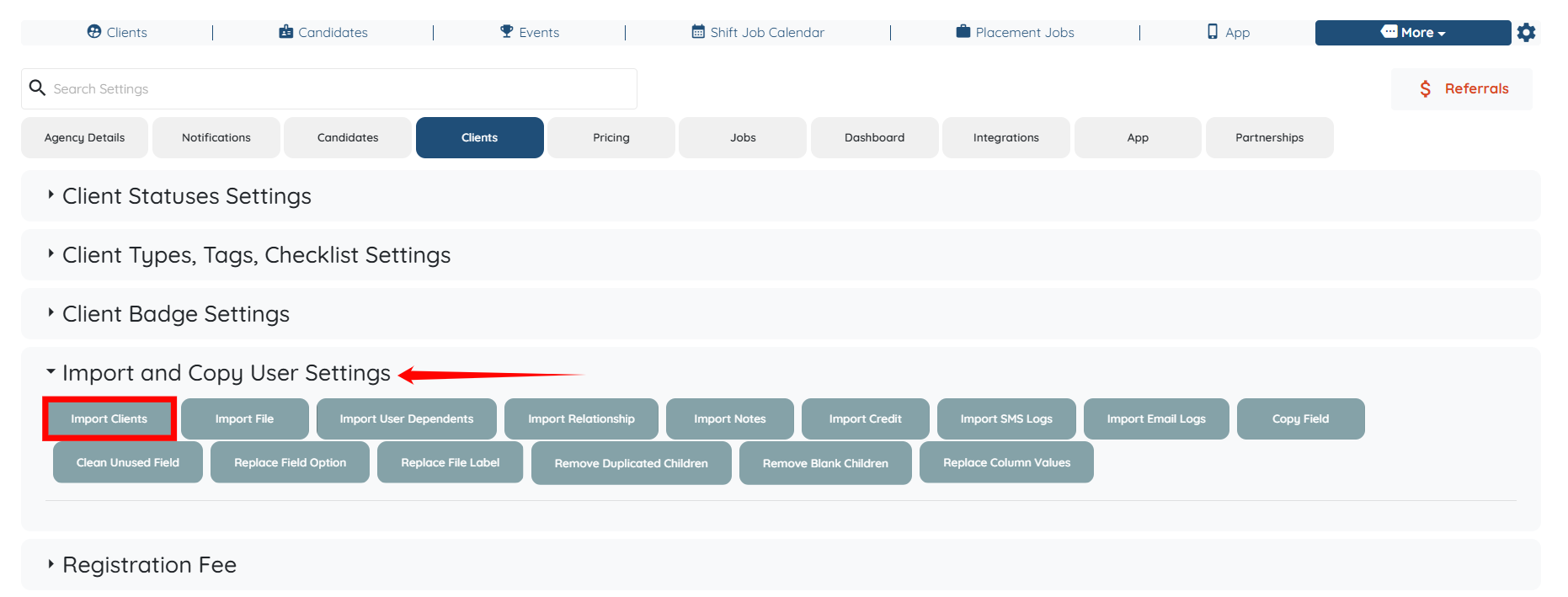 Step 3: Click the Import and Copy User Settings option to expand it, and then click the Import Clients button.