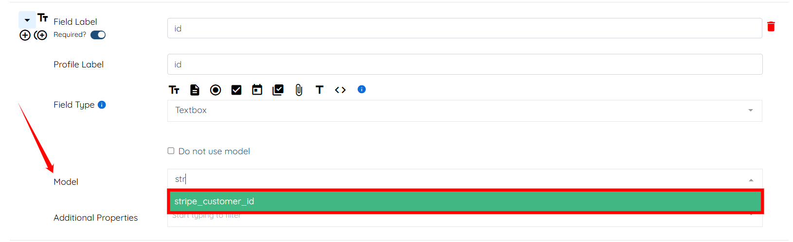 Step 5: Select “stripe_customer_id” from the Model dropdown. This maps the customer ID in the exported CSV file to the id field.