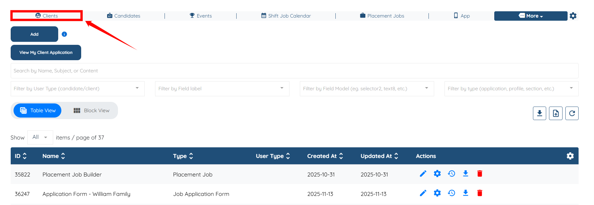 Step 7: Scroll up and navigate to Clients from the navigation bar as shown in the screenshot.
