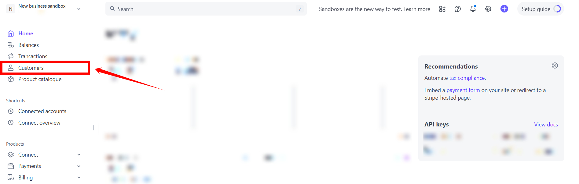 Step 1: Log in to the Stripe dashboard, and click the Customers option on the left-hand side of the dashboard.