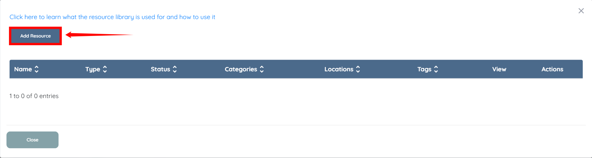 Select Resource Manager in Others. Now add a resource (even if it is just a test document or URL)