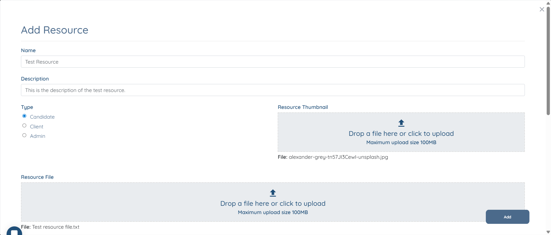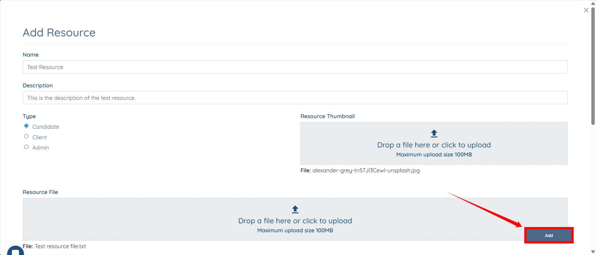 5. Complete the information to add the resource.