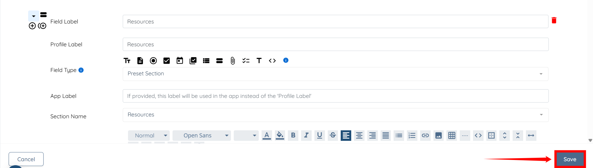 6. Label the Field.