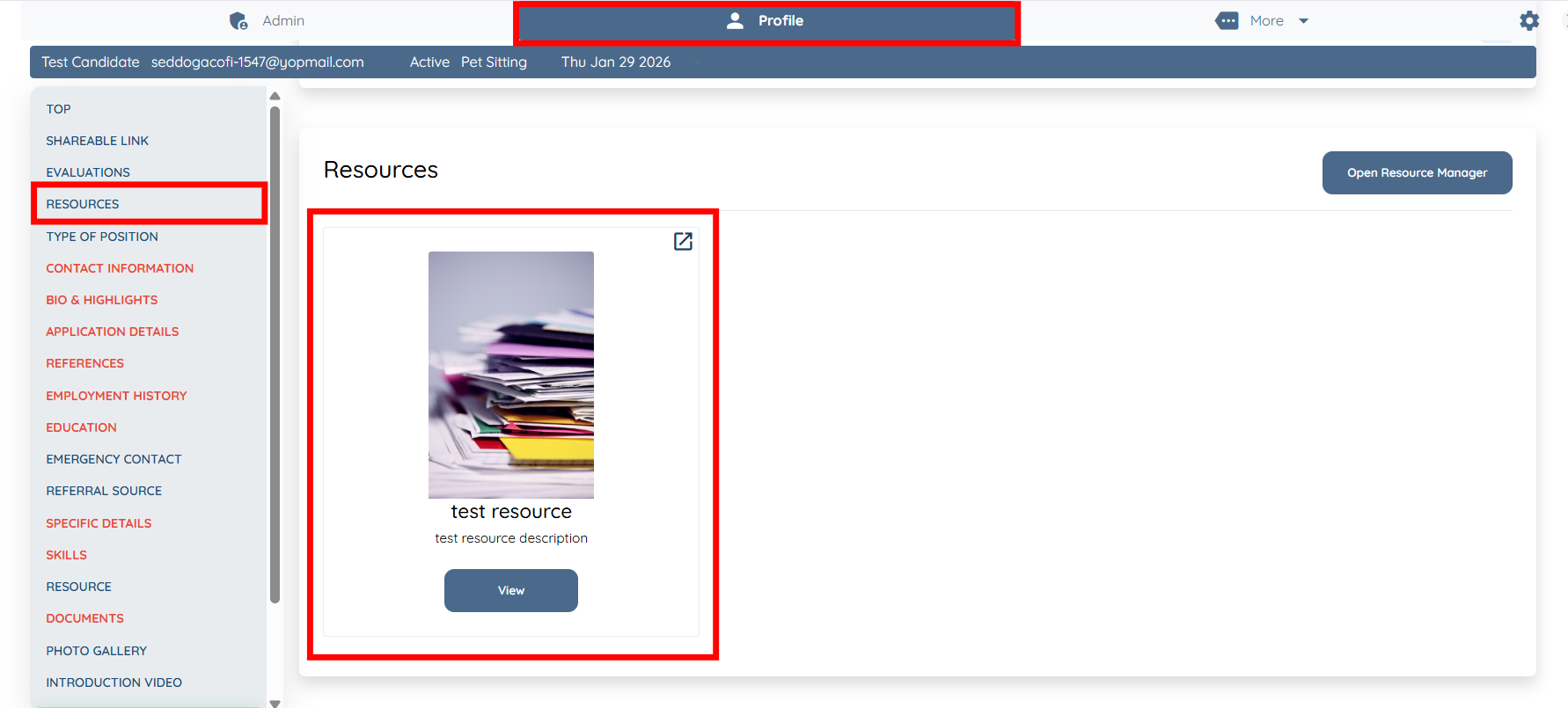 10. Now the resource will appear in the resource section on the profile.