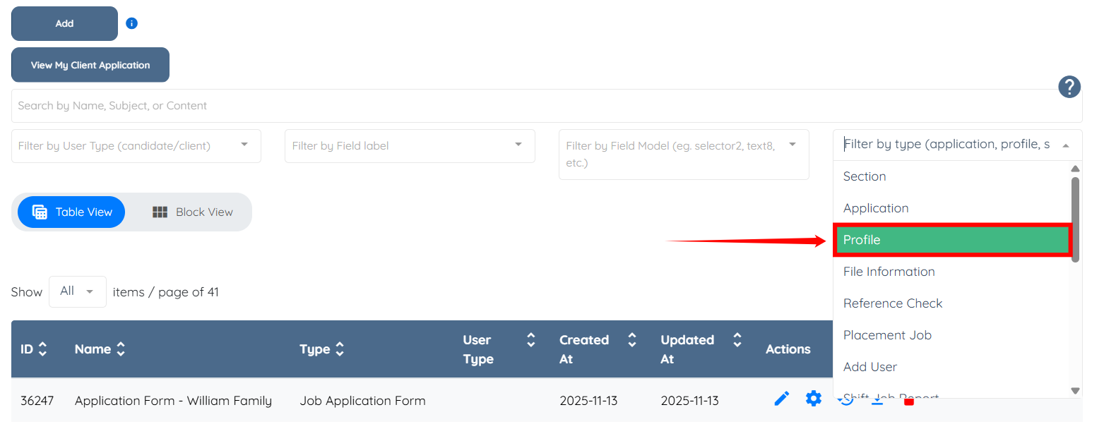 3. Filter and select Profile to quickly sort profiles.