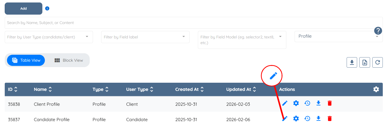 4. Select the Pencil Icon on the profile you'd like to update.