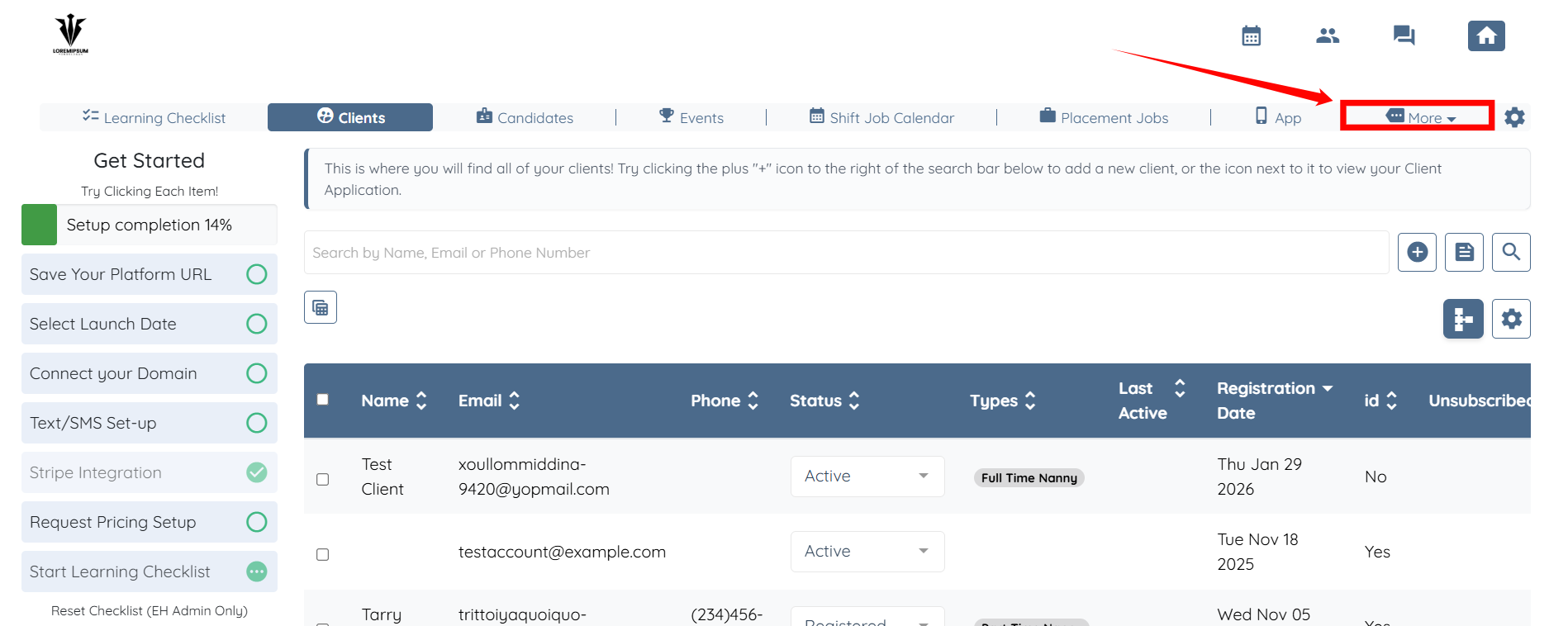 1. From your dashboard select MORE.