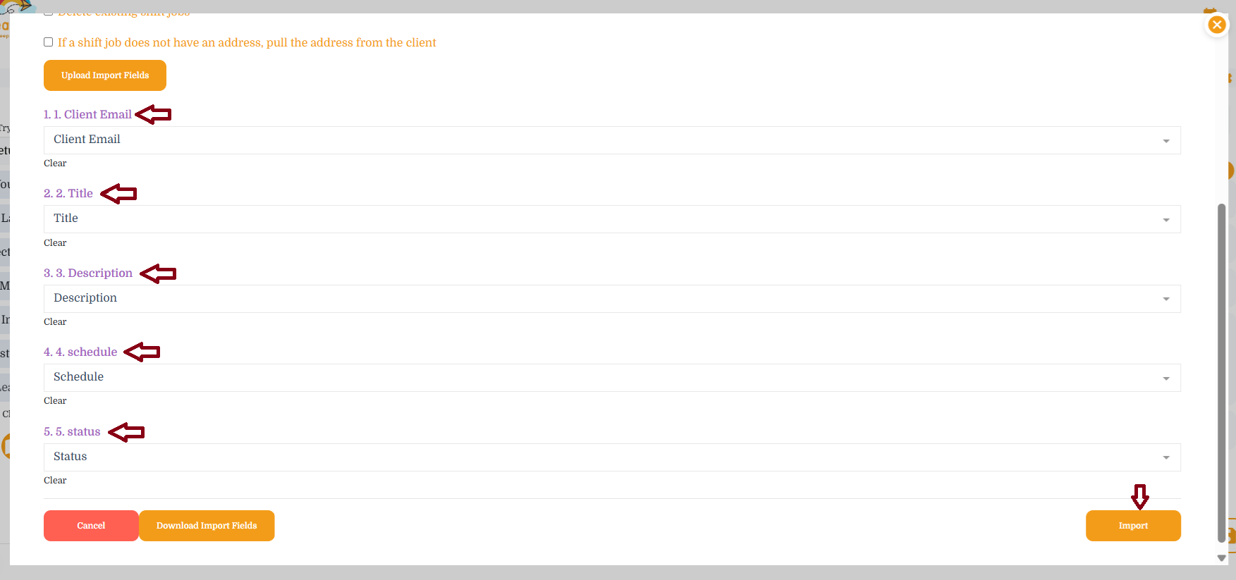 Optionally you can also download the json file which can be used later to import similar files (using the button “Upload Import Fields“ which is located at top of the importer) to map all fields auto-populate by clicking “Download Import Fields“
