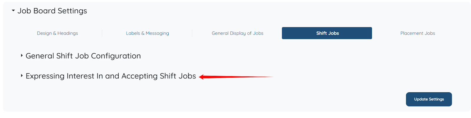 Step 5: Click the Expressing Interest In and Accepting Shift Jobs option to expand its details.
