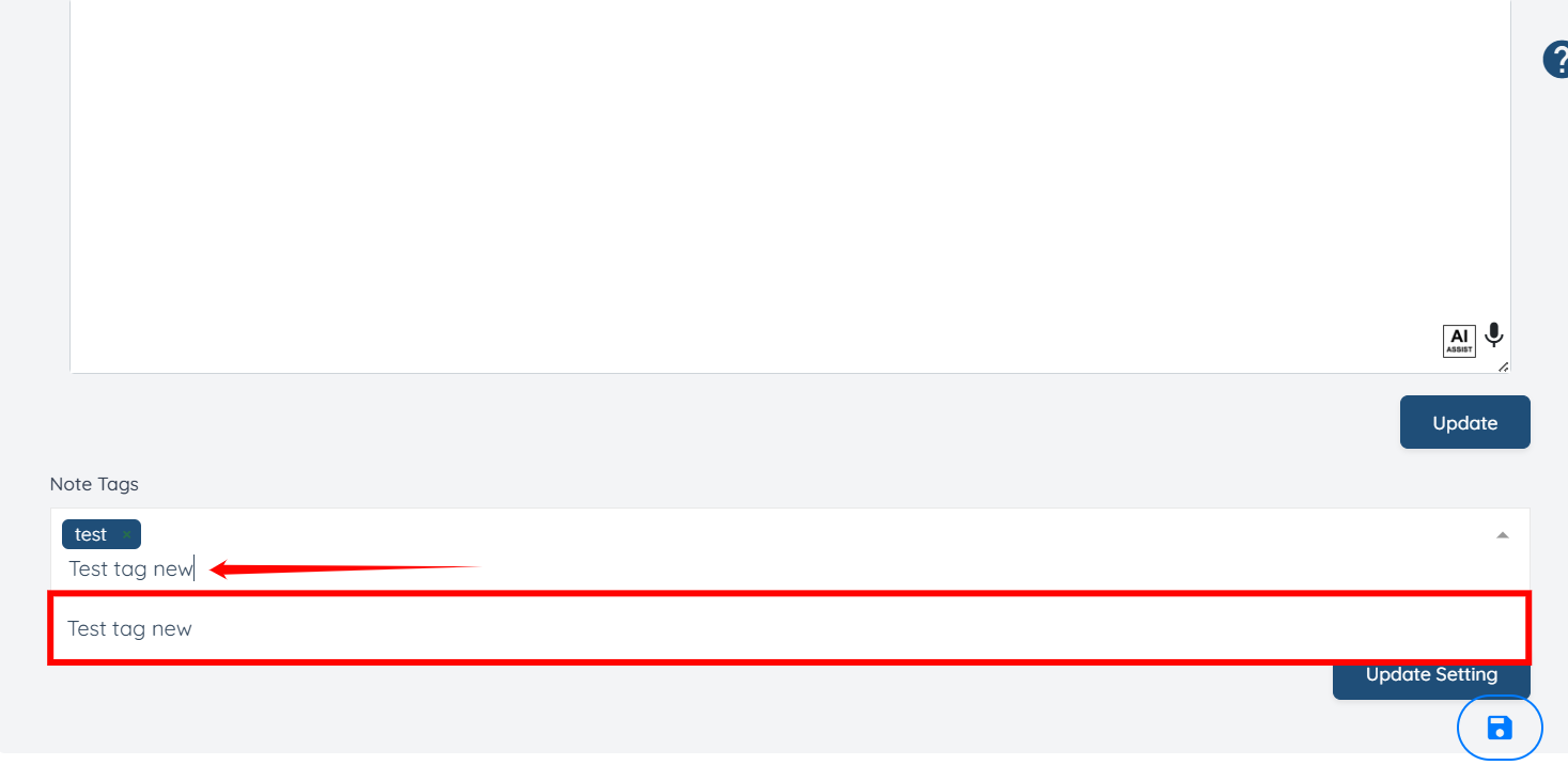 You can now view the tag that you newly added in the Tags field while adding a note.