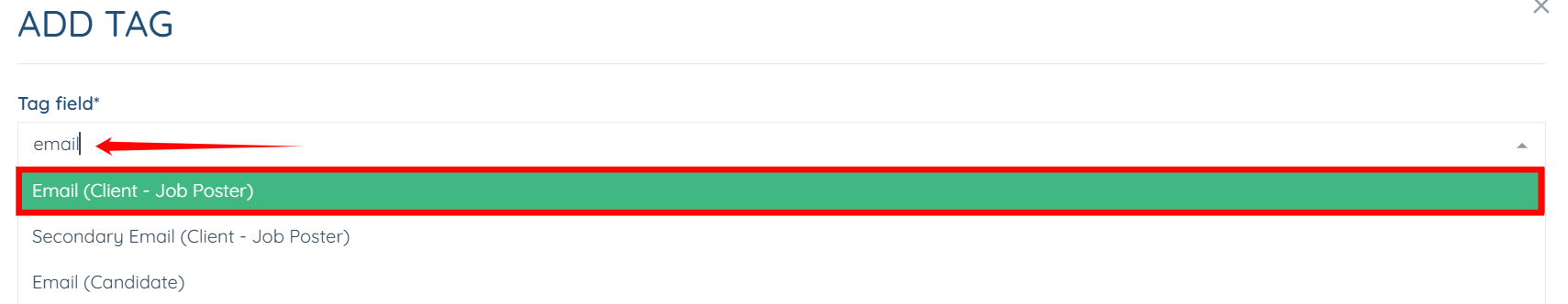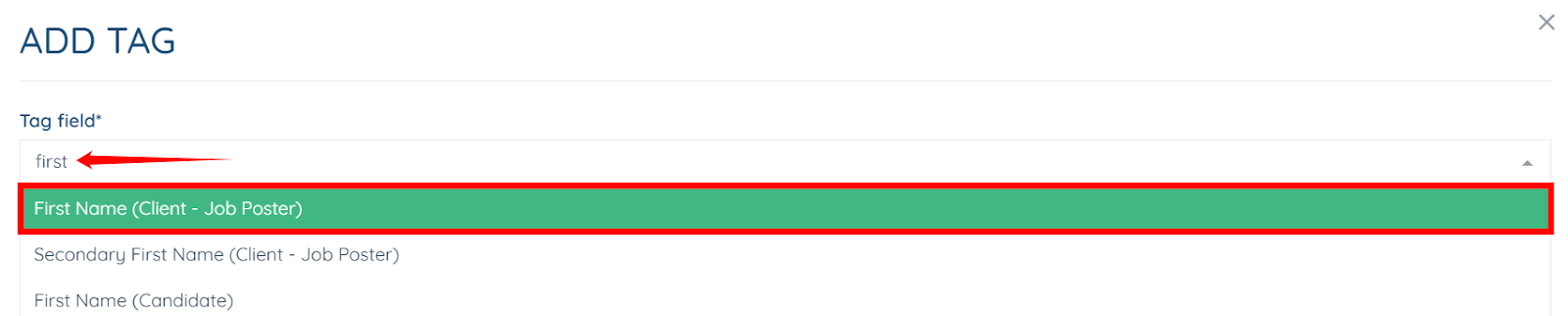 Step 5: Start typing and then select the suggested placement job tags you want to add from the dropdown.