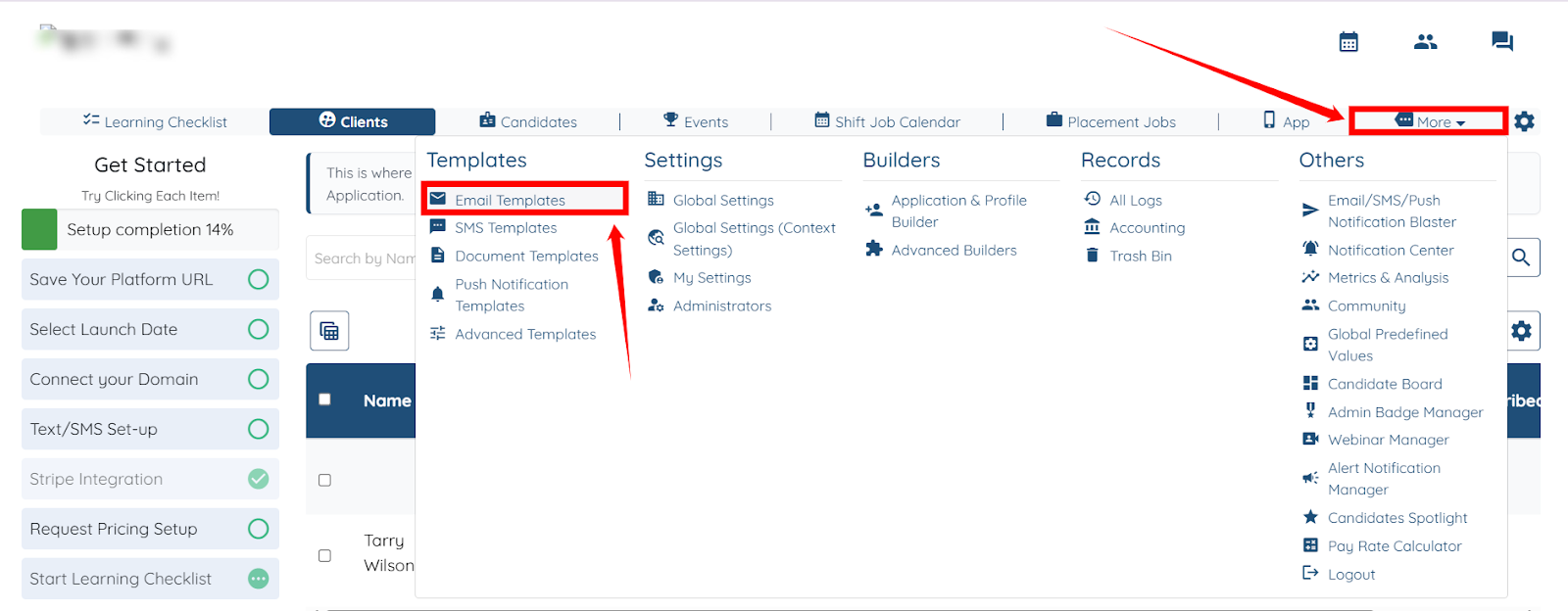 Step 1: Log in to your agent dashboard, and click More > Email Templates as shown in the screenshot.