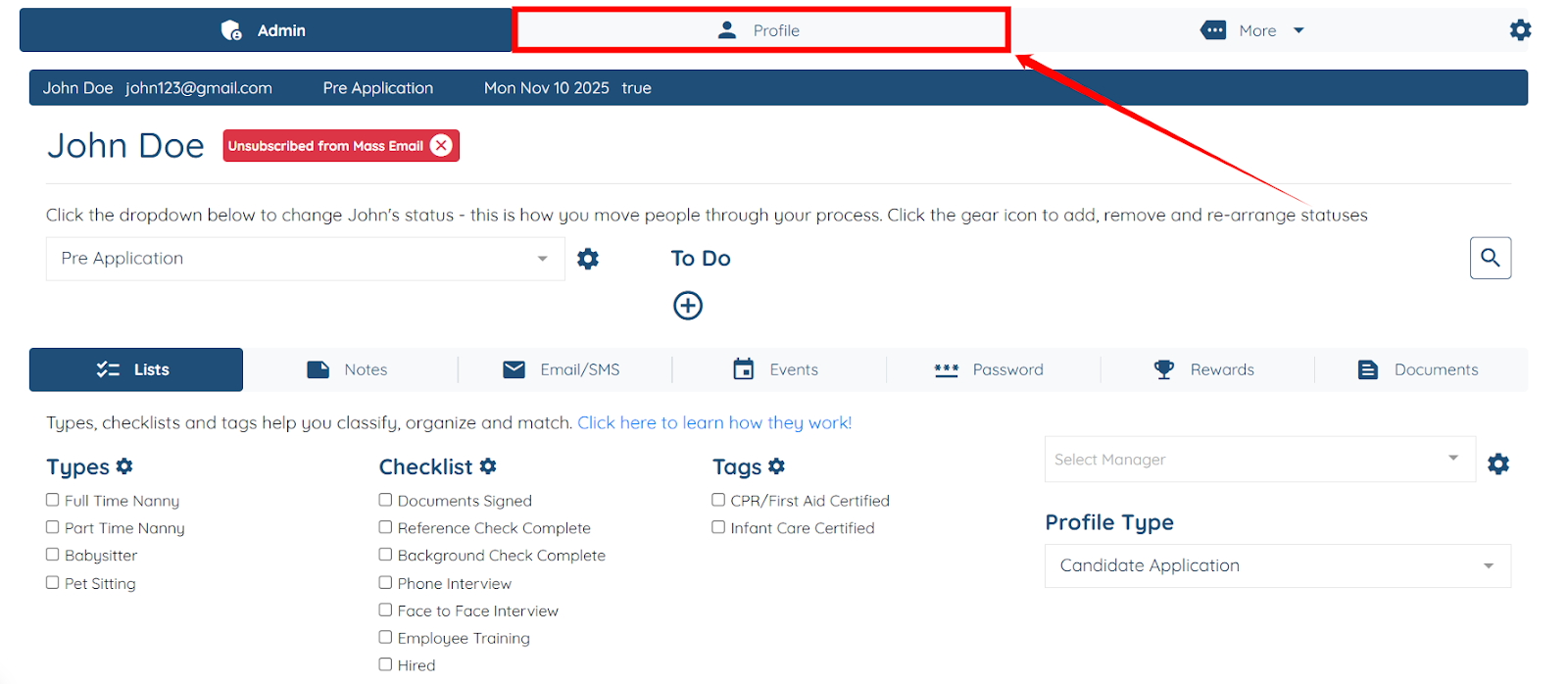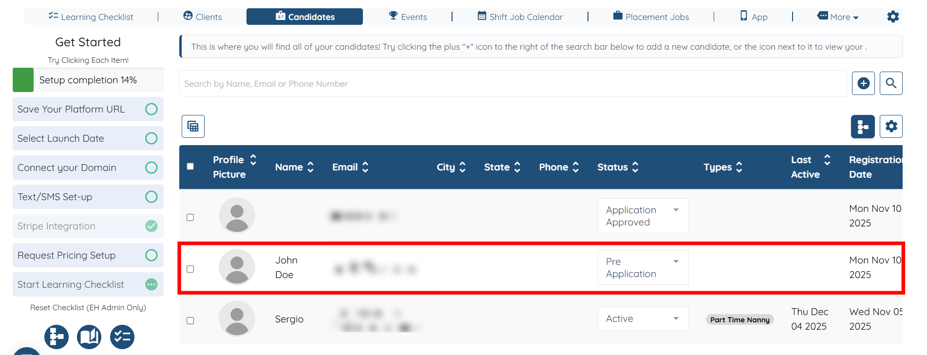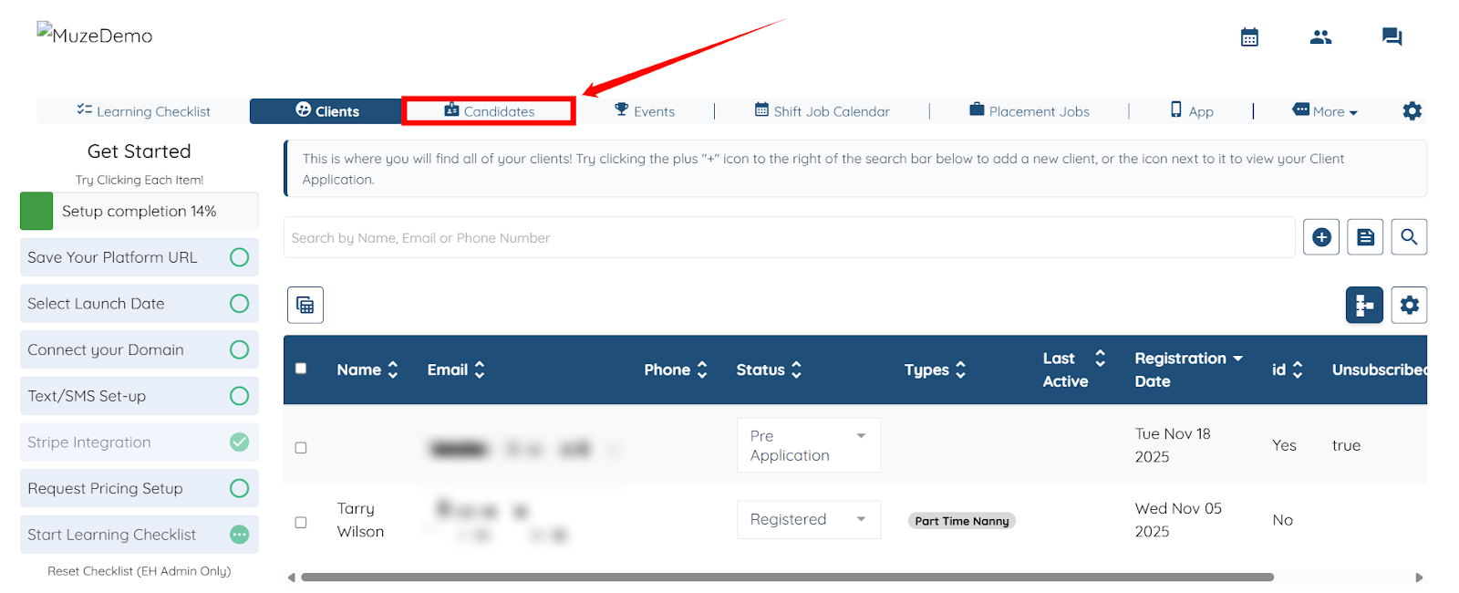 Step 1: Log in to your agent dashboard and click Candidates in the top navigation bar.