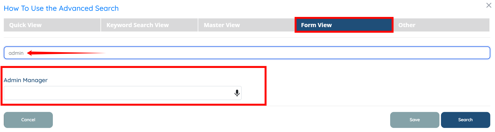 Step 4: In the same way, you can also search for the specific field you are looking for in the search bar, and it will appear just below the search bar. For example, Admin Manager.