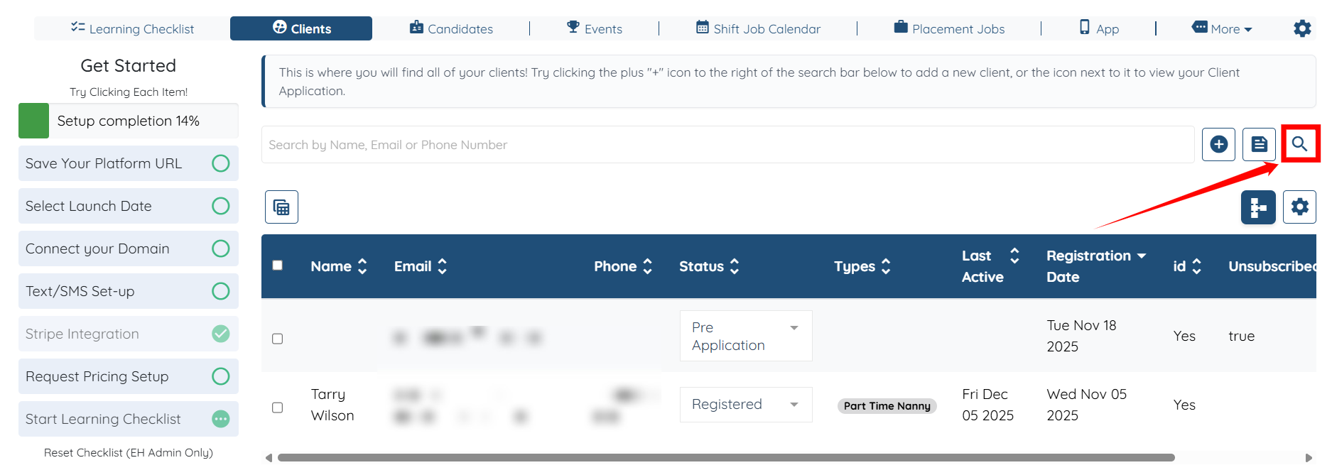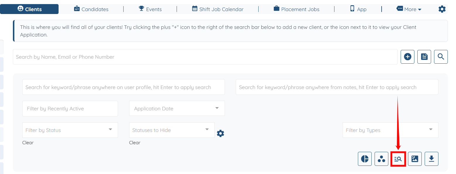 Step 1: Log in to your agent dashboard, under the Clients, click the Search and Filter Tools icon as shown in the screenshot below.
