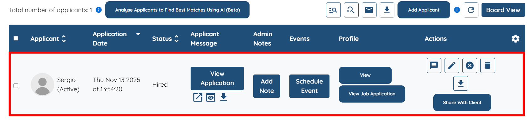 This means it displays only the applicants whose first name contains the letter “S,” enabling you to quickly narrow down the list based on partial matches.