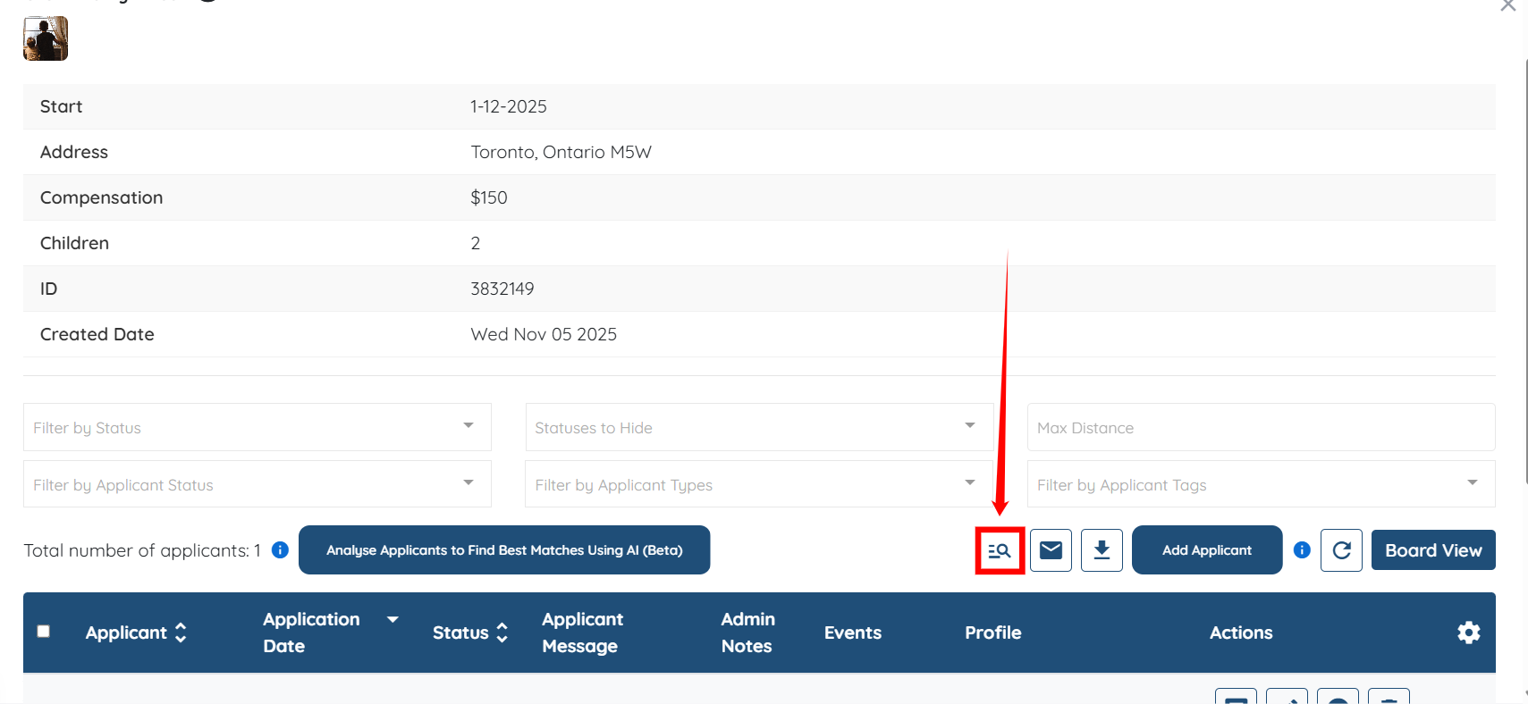 Step 2: Locate the placement job for which you want to view the applicants, and then click the View Applicants button.