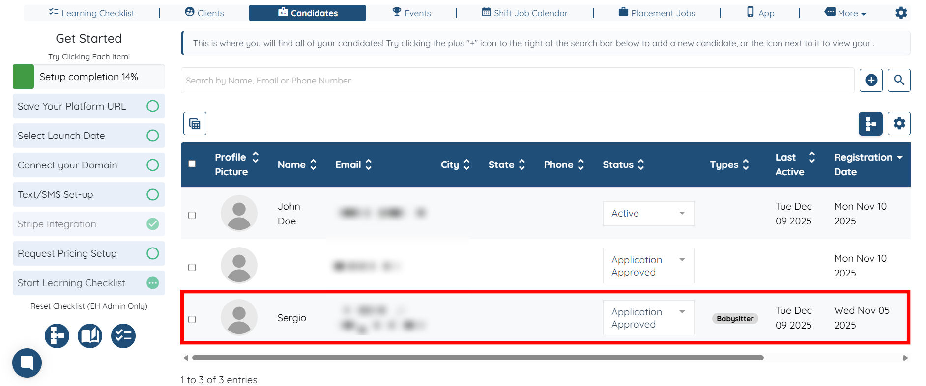 Step 2: Click the candidate in the list that you want to mark as Inactive.