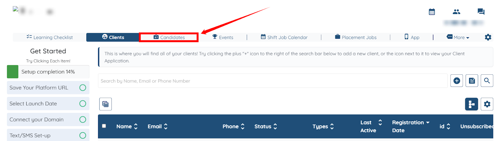 Step 1: Log in to your agent dashboard and click Candidates in the top navigation bar.