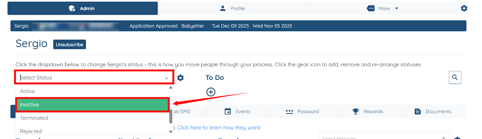 The candidate’s status will be successfully changed to Inactive.