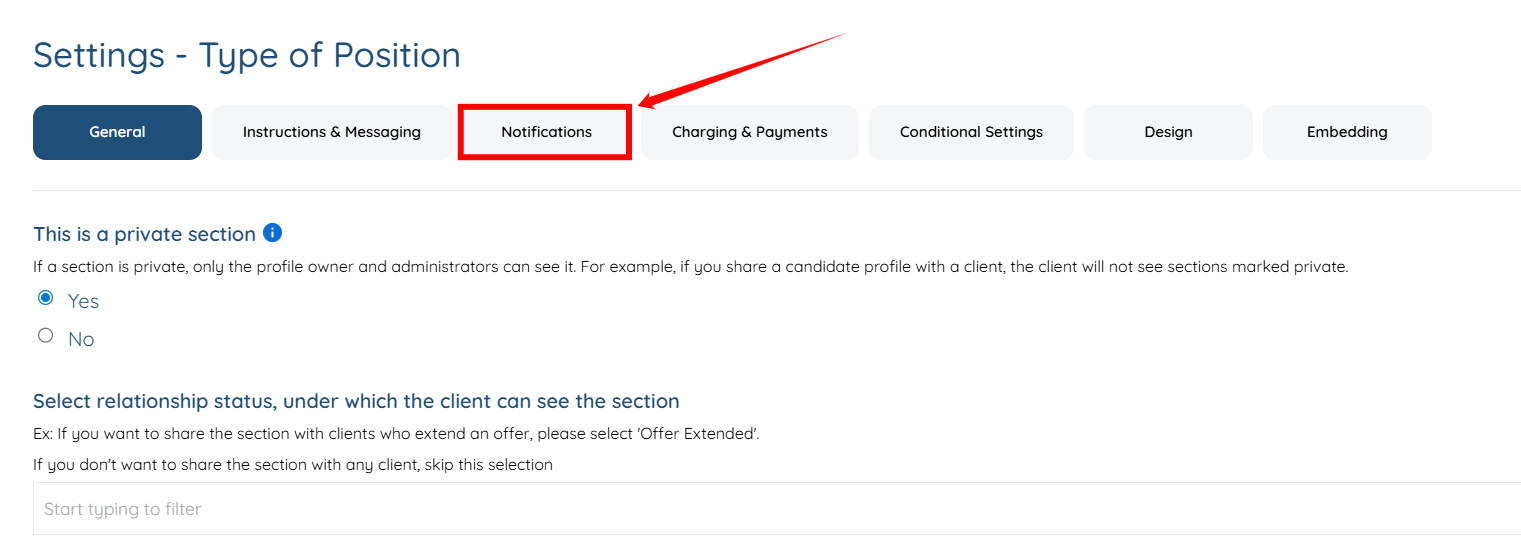 Step 4: Now, follow the same steps (steps 5β10) as outlined above to add the email address that will receive updates whenever a candidate submits information for the selected section.