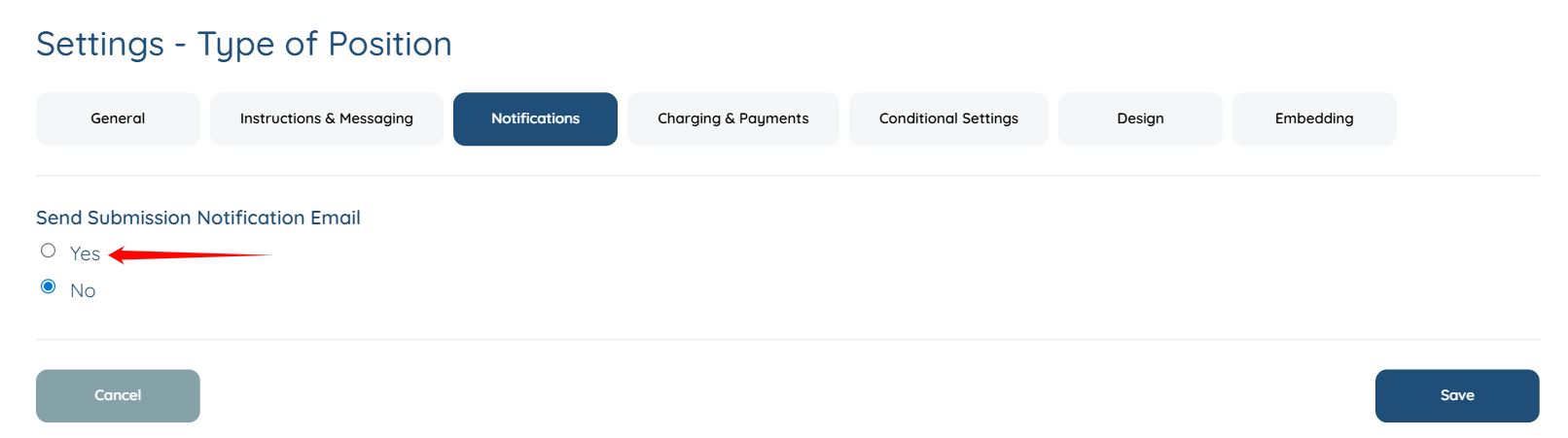 Step 7: Select the Yes radio button under the Send Submission Notification Email option.