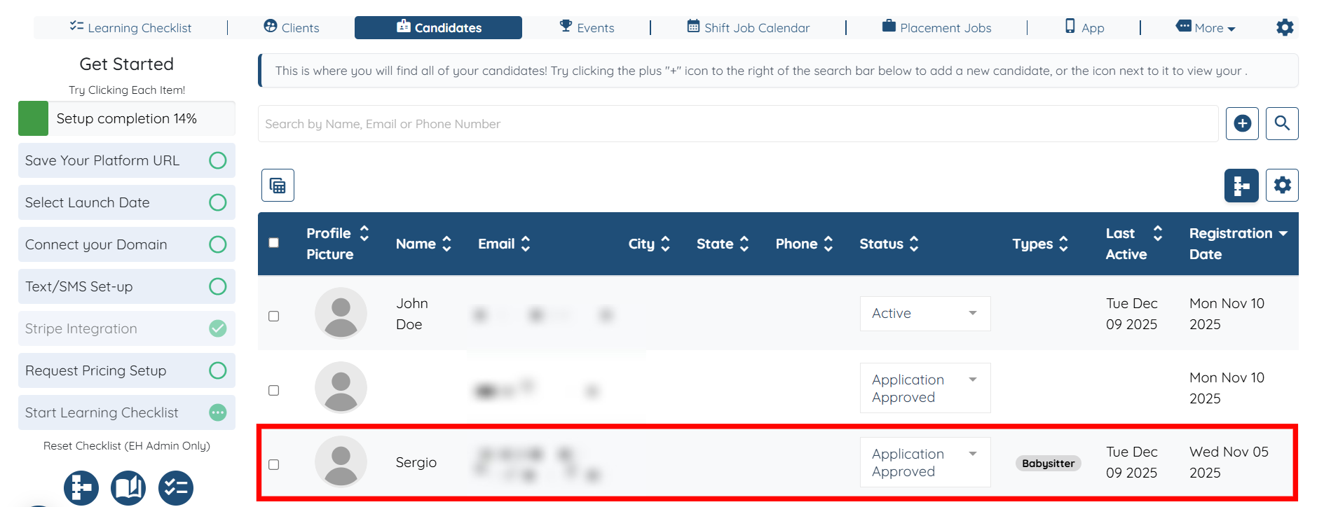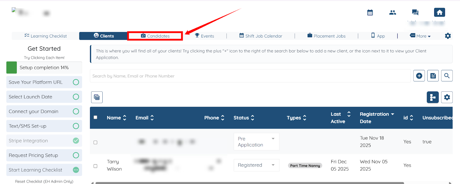 Step 1: Log in to your agent dashboard and click the Candidates in the top navigation bar.