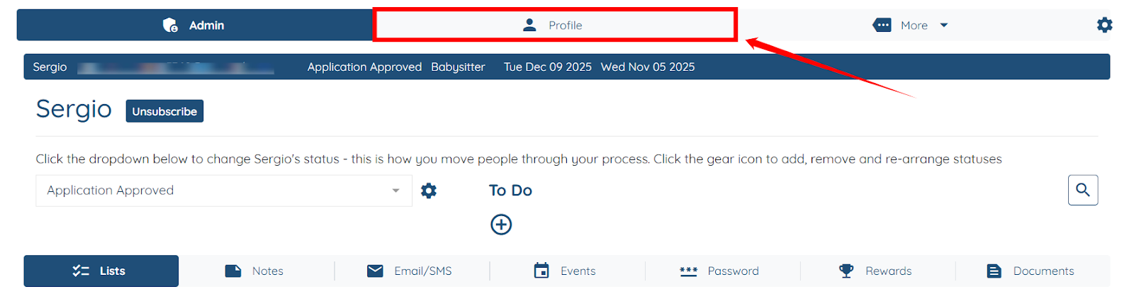 Step 3: Click the Profile tab, as shown in the screenshot below.