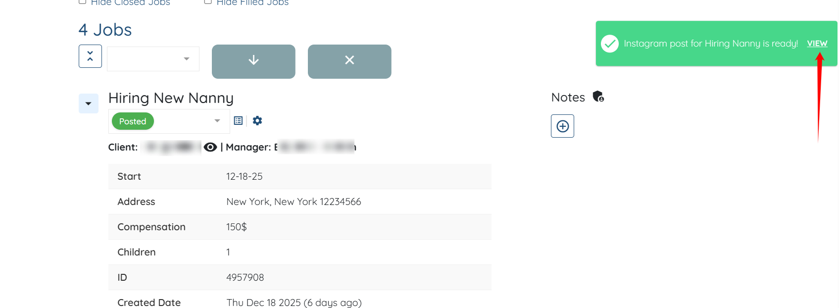 Step 2: Locate the placement job for which you want to create an Instagram post. Then, click the Image icon as shown in the screenshot below.