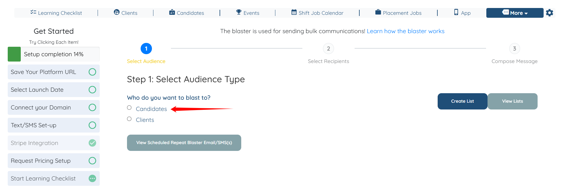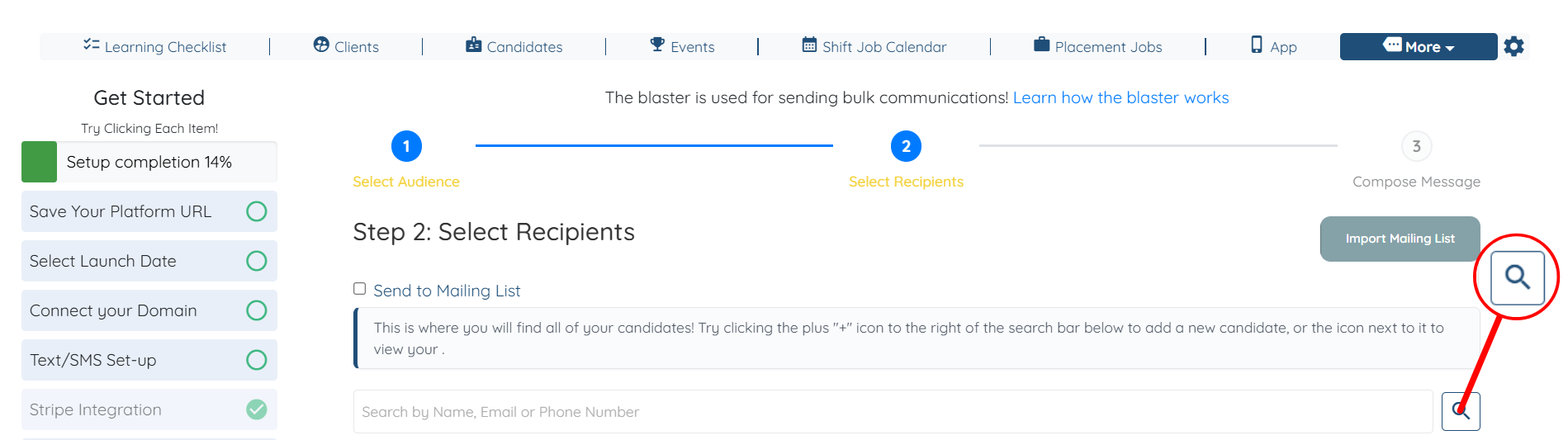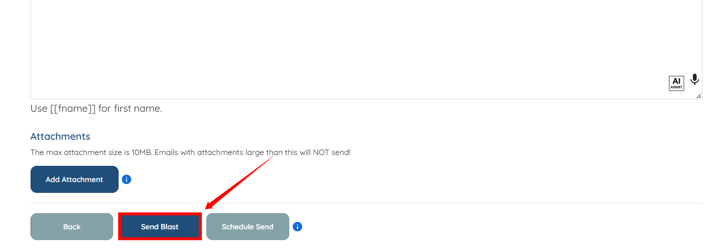 Step 12: Click the Send Blast button to send an email blast to the selected candidates.