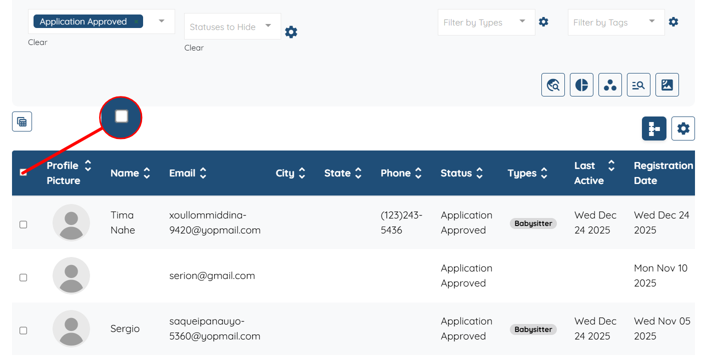 Step 7: The candidates list will be filtered based on the selected status. Click the checkbox, as shown in the screenshot below, to select all the filtered candidates.