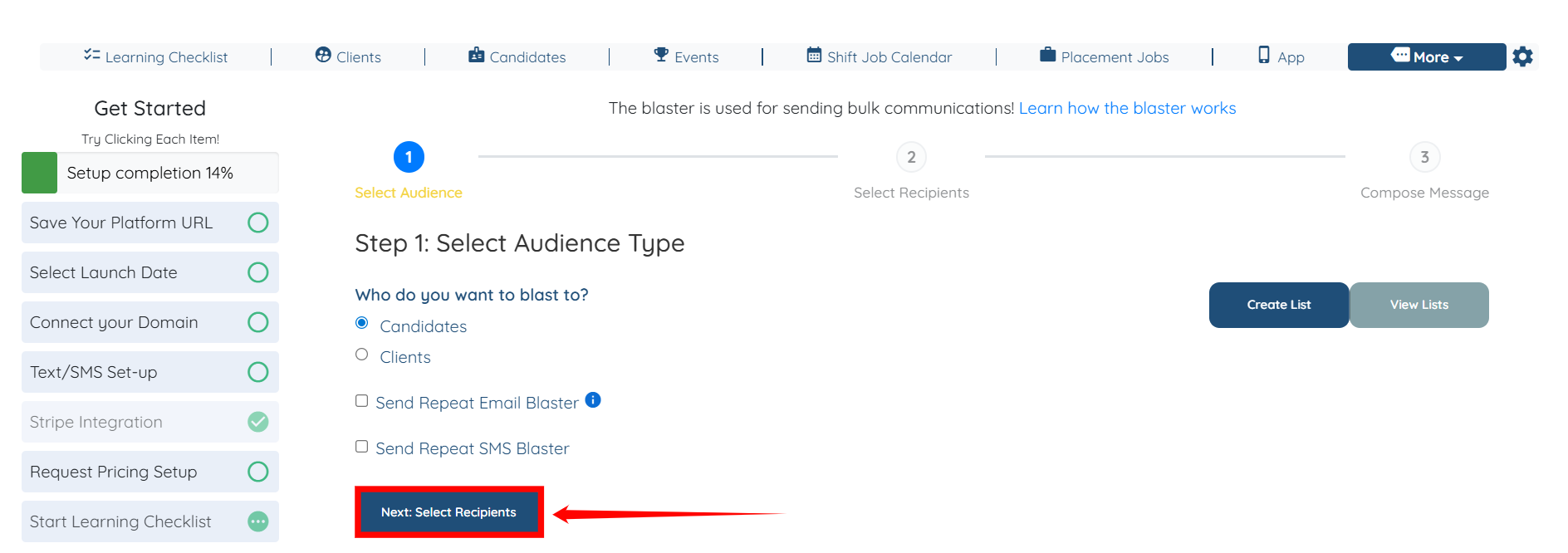 Step 3: Click the Next: Select Recipients button to begin the process of selecting the candidates.