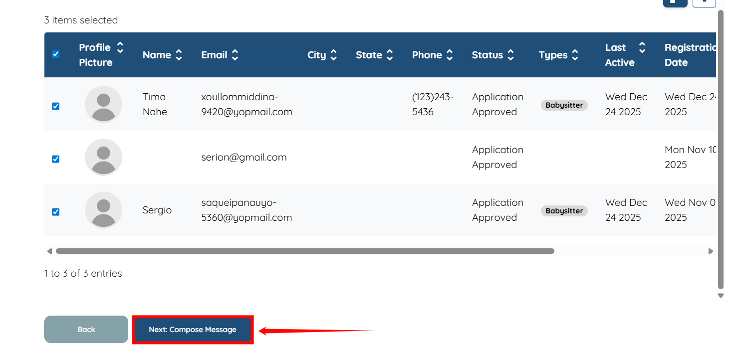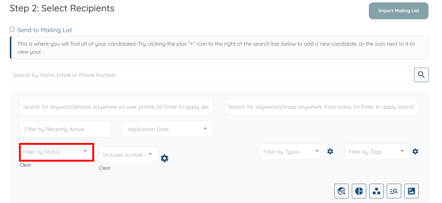 Step 6: Select the specific status of the candidates to whom you will send the email blast.