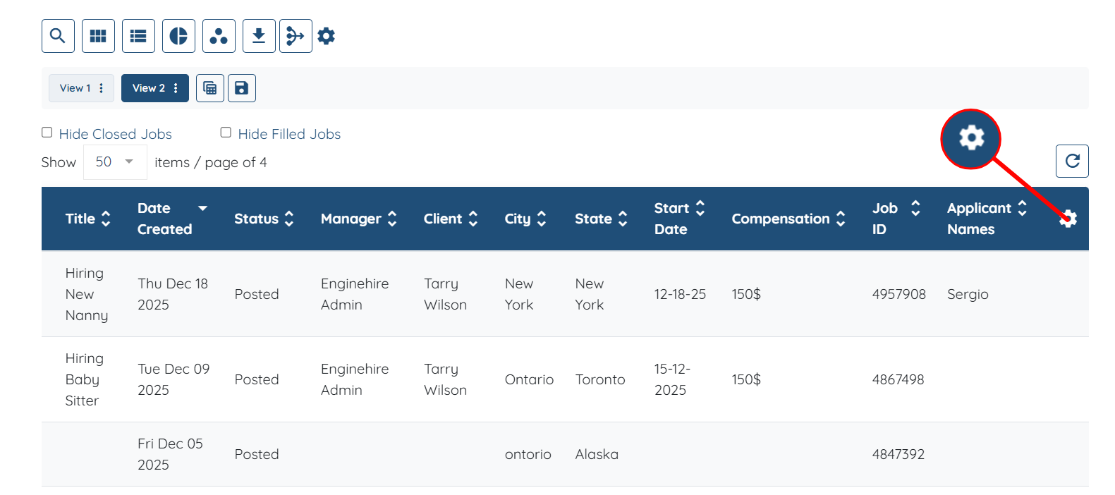 Step 4: Click the Gear icon located on the right-hand side of the table.