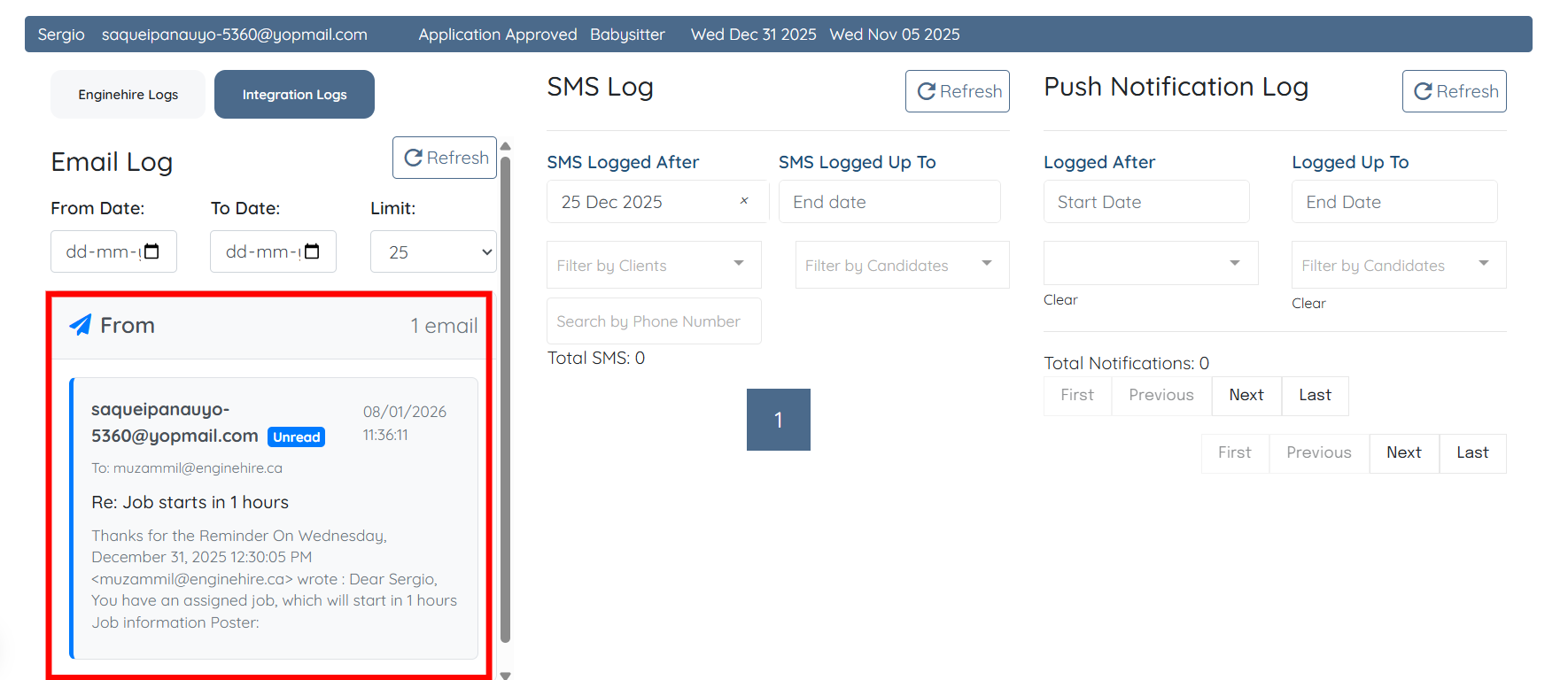 Step 11: Click the Integration Logs button.