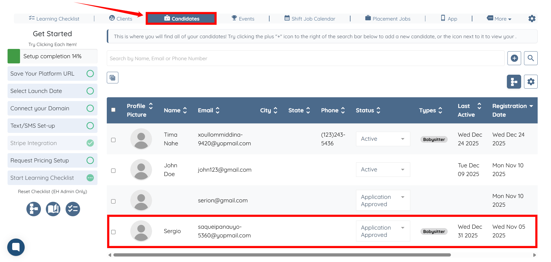 Step 9: From the Candidates section, select any candidate from the list.