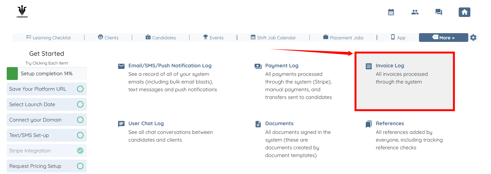 Step 2: Click the Invoice Log option to view all invoice logs.