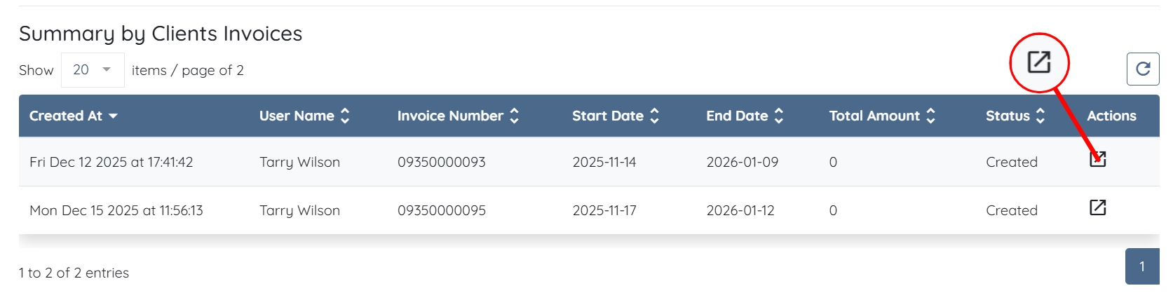 Step 4: After you narrow down the invoices, click the icon shown in the screenshot below to view the invoice.