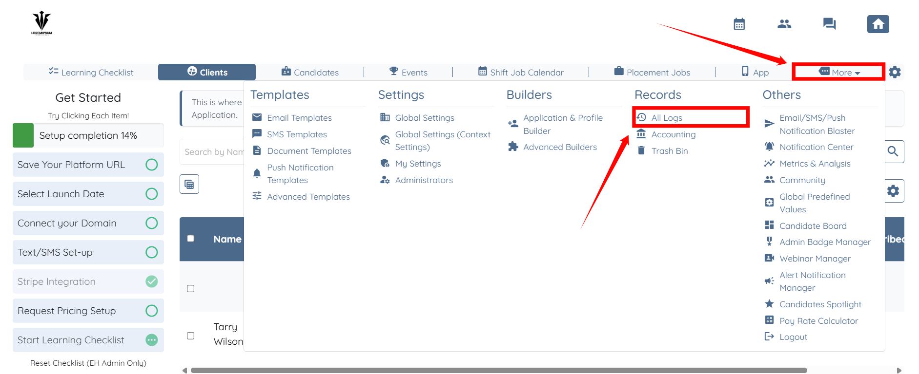 Step 1: Log in to your agent dashboard and click More > All Logs, as shown in the screenshot below.