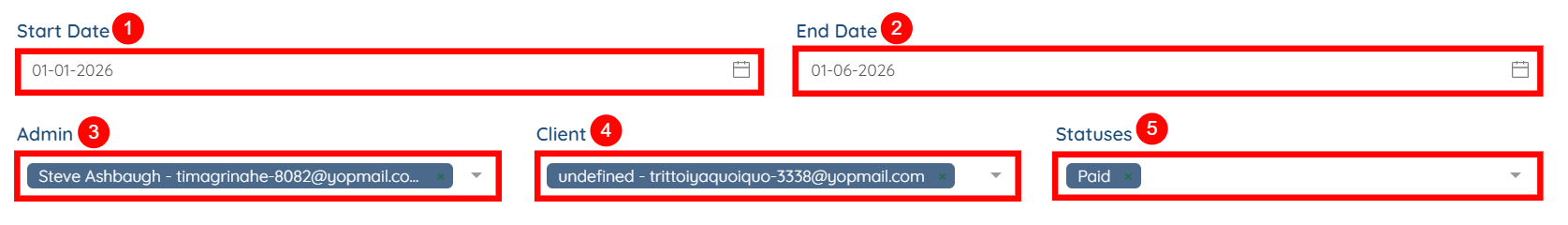 1 | Start Date | Select the start date to filter invoices created on or after this date. |
