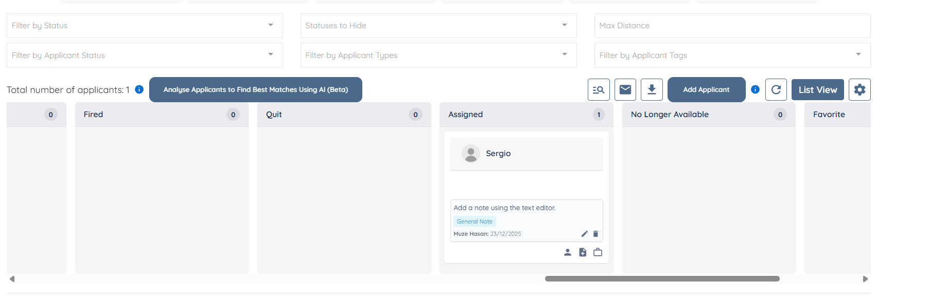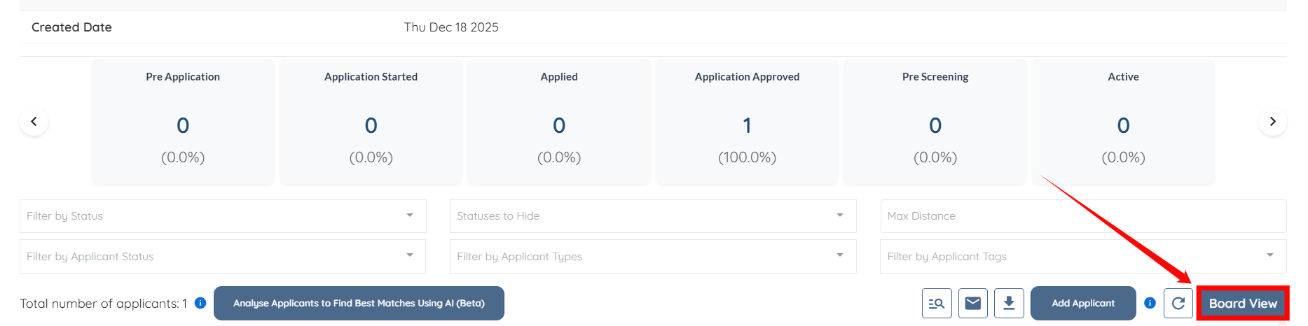 You can now use the Board view to review the applicants for the selected placement job.