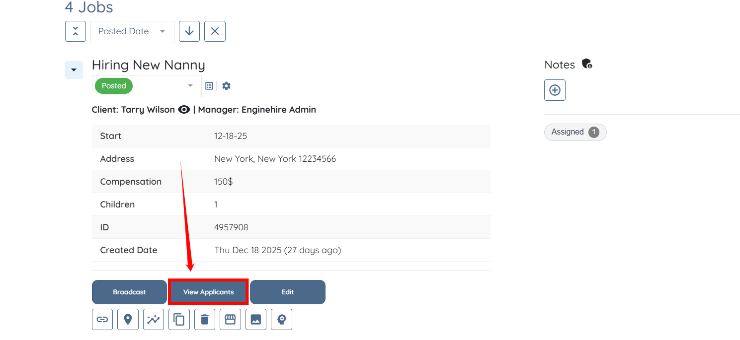 Step 2: Scroll down and click the View Applicants button for any placement job, as required.