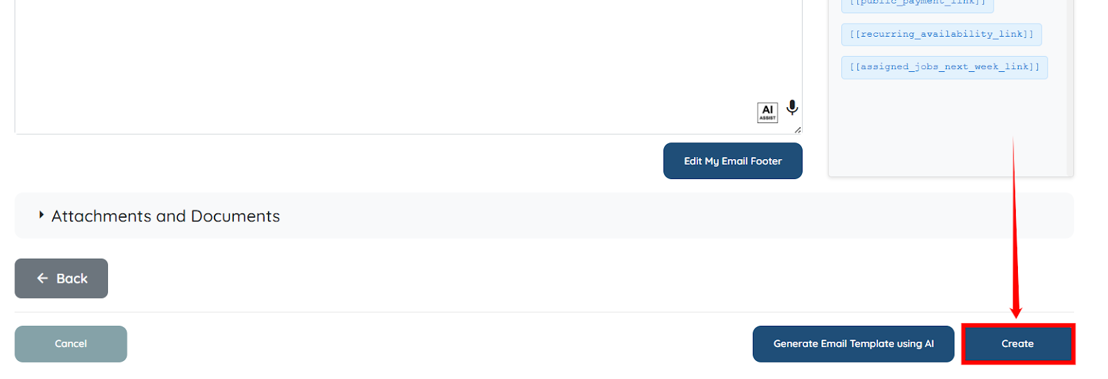 Step 13: Scroll down and click the Create button to save the Email Blaster.