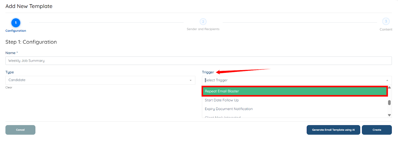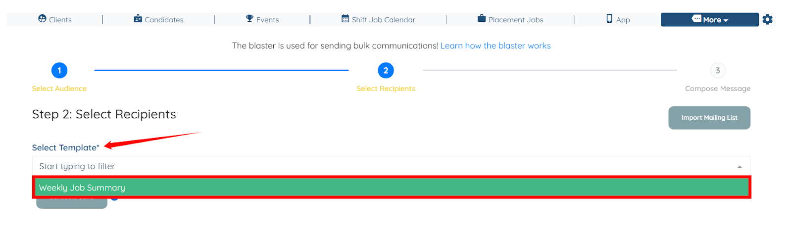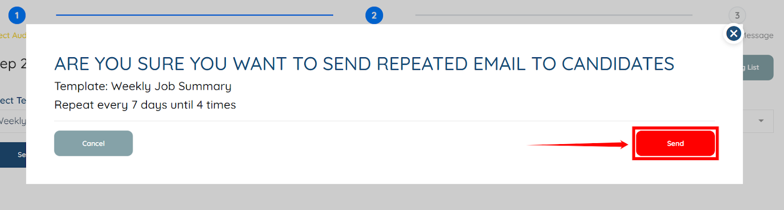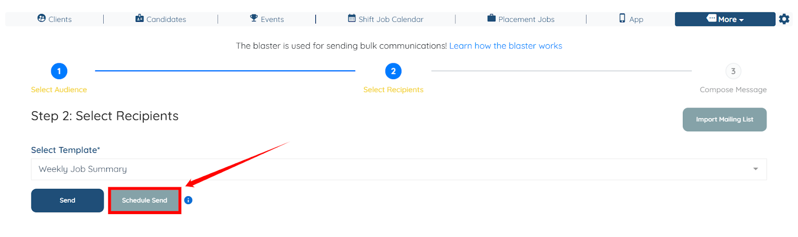 Use the steps below to send the weekly job summary to candidates through the Repeat Email Blaster.