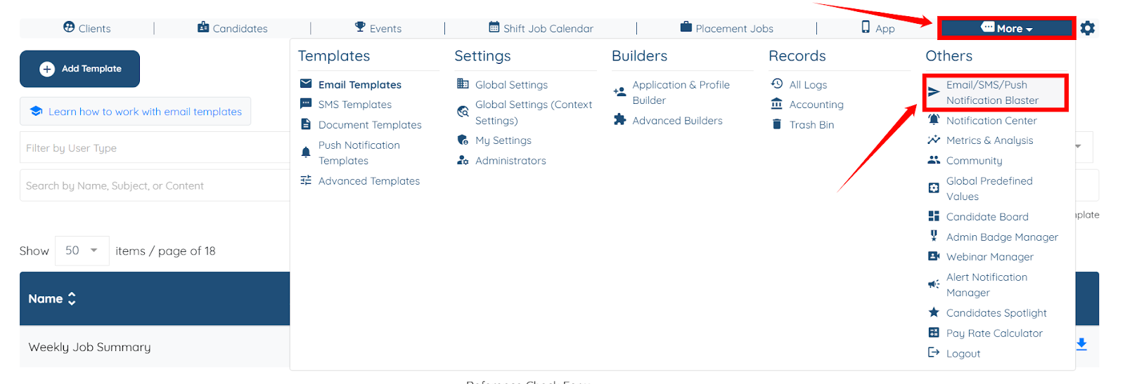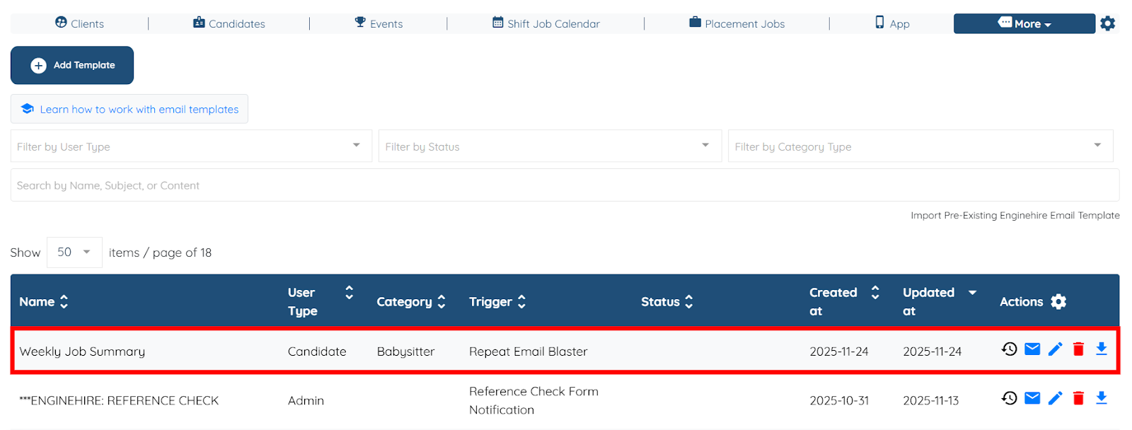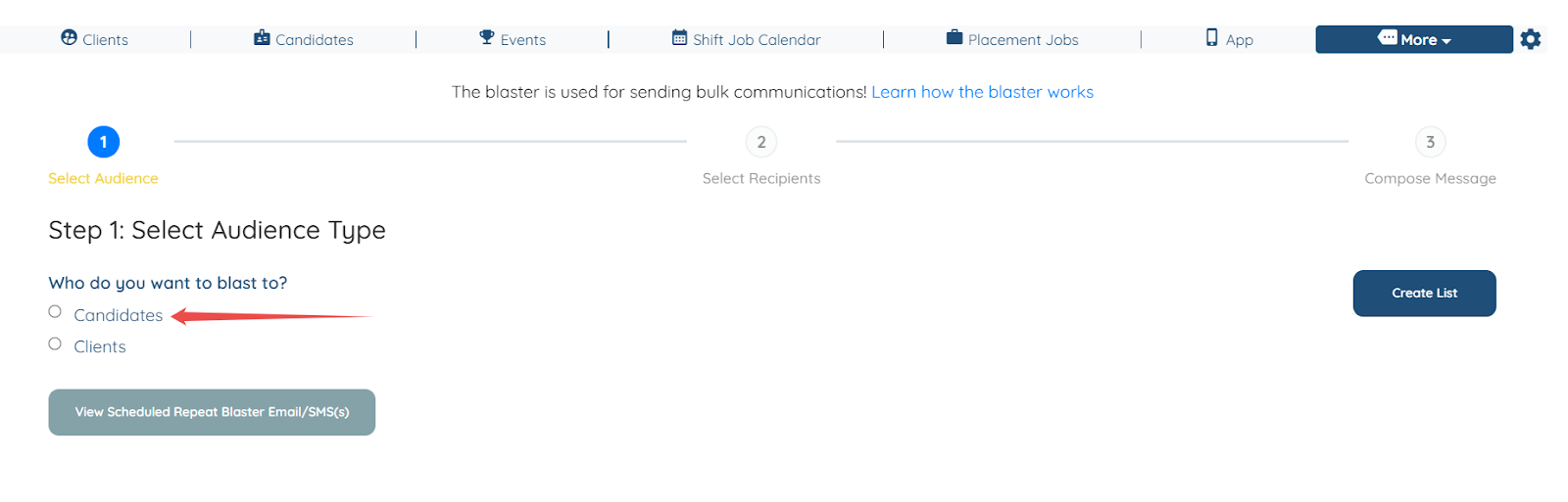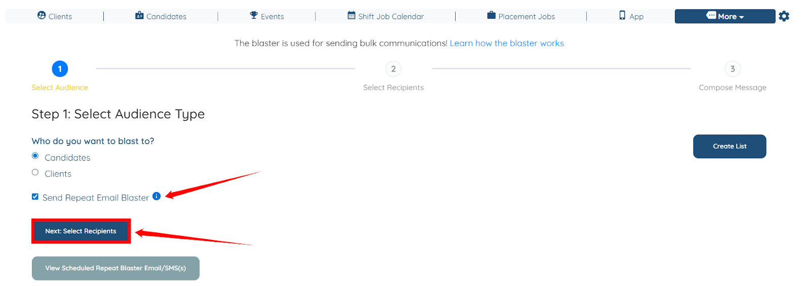 Use the steps below to send the weekly job summary to candidates through the Repeat Email Blaster.