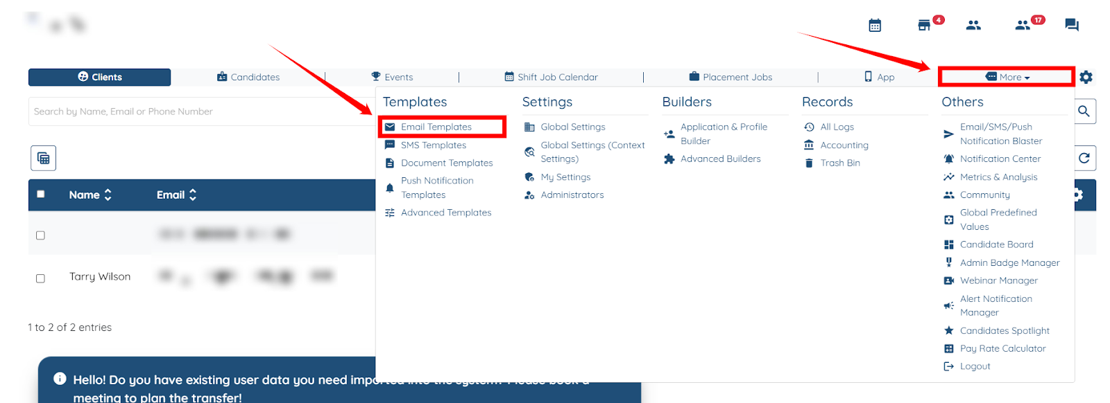 Step 1: Log in to your agent dashboard, then navigate to More > Email Templates, as shown in the screenshot below.