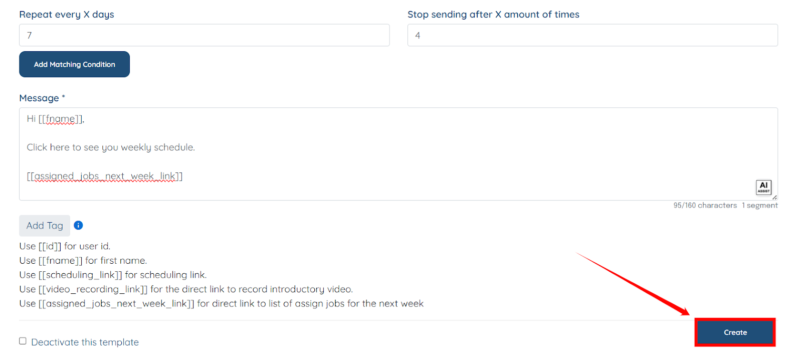 Follow the steps below to create and send the weekly assigned job summary through the Repeat SMS Blaster.